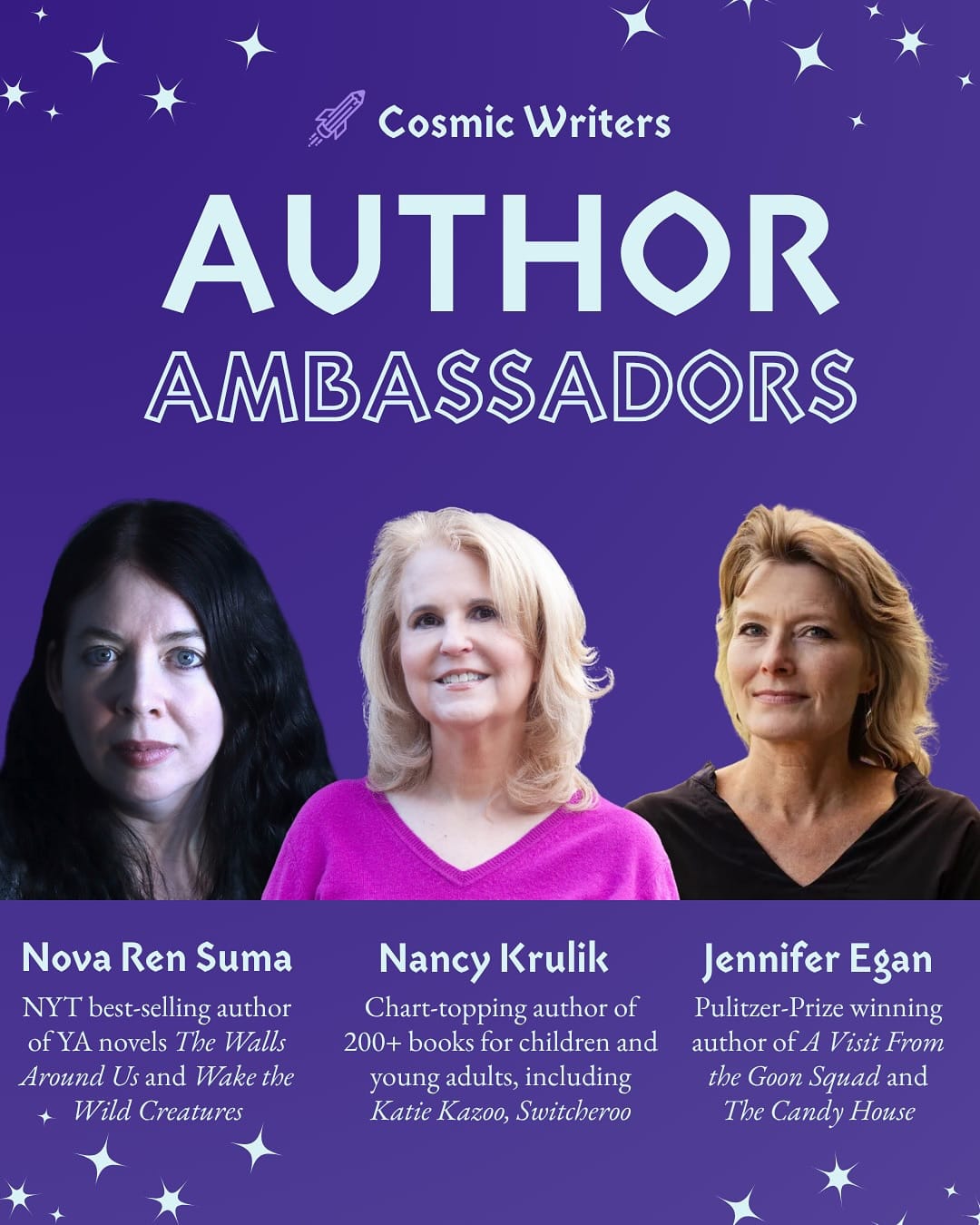 I'm honored to be one of the Cosmic Writers founding Author Ambassadors, along with Nancy Krulik and Jennifer Egan! One of my incredible former students at Penn, Rowana Miller, is the executive director, and a few of my other incredible former students at Penn are current or former instructors in this program.