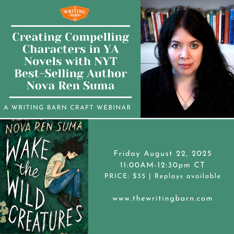Some years ago, I had the joy of leading a workshop at the Writing Barn in Austin, Texas, and I've never forgotten that experience. I'm excited to return to the Writing Barn (if virtually) with a character-focused webinar that features my own personal tips, tricks, and creative exercises to develop and deepen the young characters in your novels. These are prompts, approaches, and ways of looking at character that I used when writing Wake the Wild Creatures, and they are for writers of all genres who are looking to create dynamic, layered characters in your coming-of-age stories.