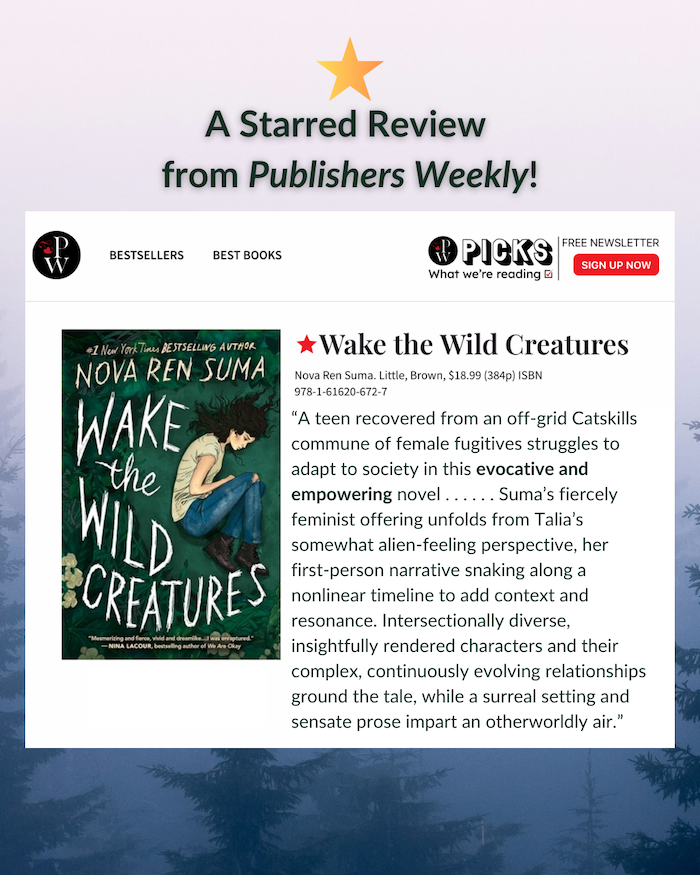 âď¸ Publishers Weekly said: "A teen recovered from an off-grid Catskills commune of female fugitives struggles to adapt to society in this evocative and empowering novel . . . Sumaâs fiercely feminist offering unfolds from Taliaâs somewhat alien-feeling perspective, her first-person narrative snaking along a nonlinear timeline to add context and resonance. Intersectionally diverse, insightfully rendered characters and their complex, continuously evolving relationships ground the tale, while a surreal setting and sensate prose impart an otherworldly air."